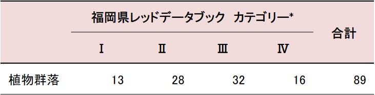 | 表1 福岡県RDB掲載植物群落のカテゴリー別の群落数 |