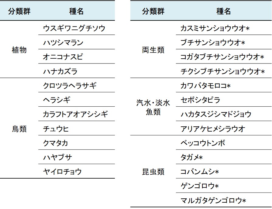 | *:特定第二種国内希少野生動植物種 |